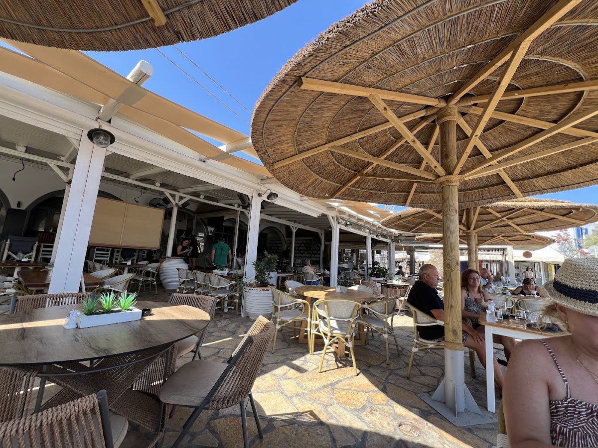 Romvi Cafe boasts both indoor and outdoor seating, allowing you to choose your preferred ambiance. With ample shade from the sun, the outdoor terrace offers stunning views of the shimmering Aegean Sea, making each sip of your drink feel like a moment in paradise. Whether you’re starting your day or enjoying a well-earned break, the calming sounds of Greek music complement the gentle lapping of waves, adding to the enchanting experience.